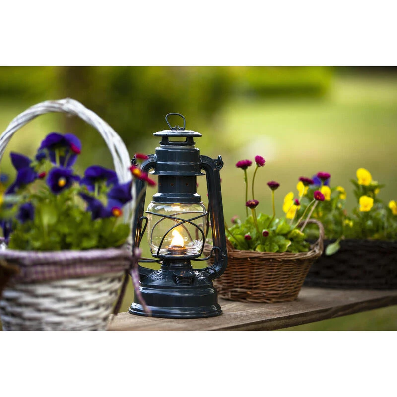 Lanterne Feuerhand d’origine : fabriquée en Allemagne ! Garantie anti-rouille ! Hauteur de 26 cm, diamètre de 13 cm. Capacité de réservoir de 0,34 litre. Dure jusqu’à 20 heures. Signal jaune lumineux.