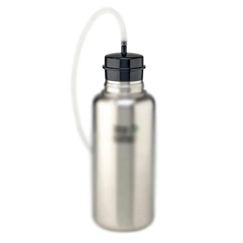 Fixé a une bouteille a large ouverture, ce filtre a charbon contribue a améliorer le gout de l’eau.