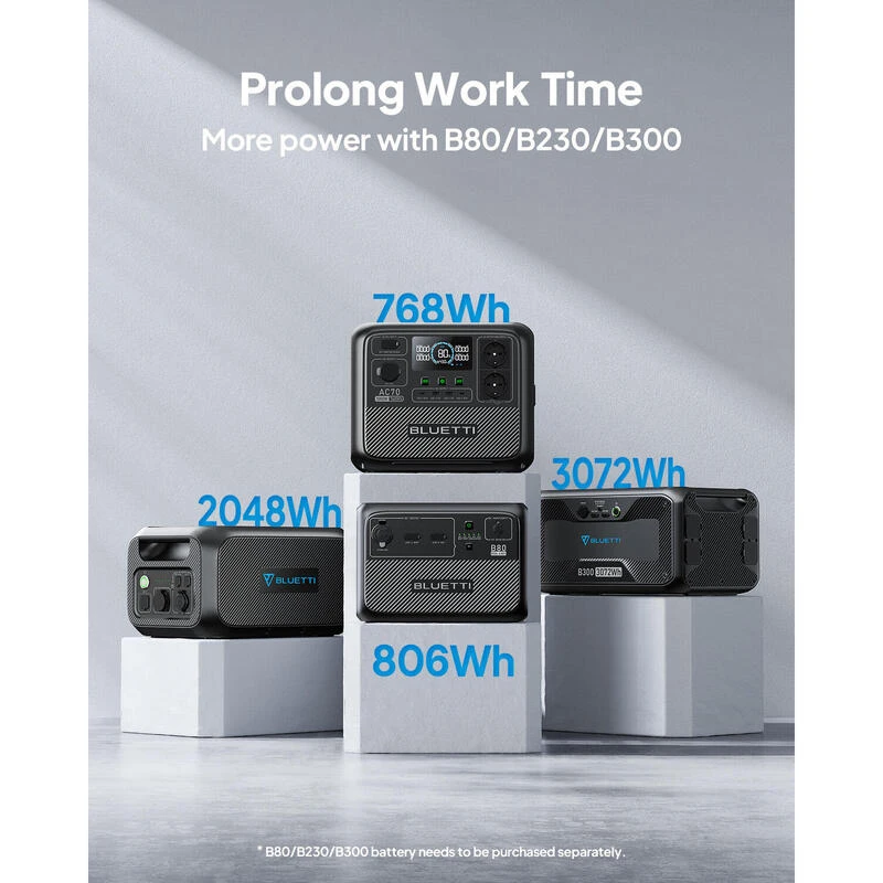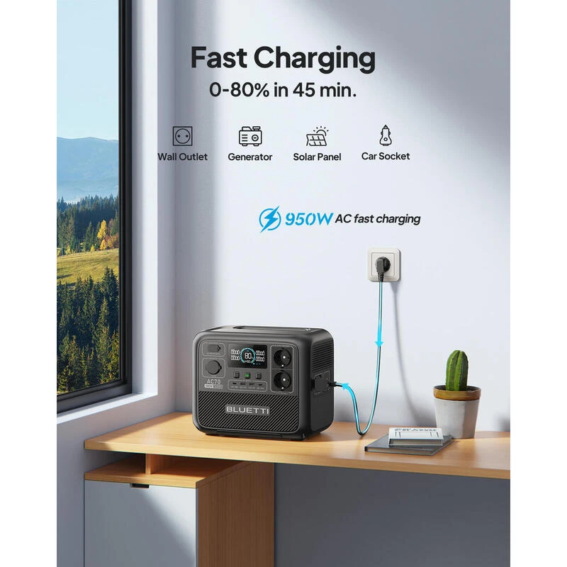 BLUETTI Générateur Électrique Portable AC70 LiFePO4 de 768Wh avec Panneau Solaire PV120, Charge Rapide de 45 Min de 0 à 80%, 2 Sorties CA de 1000W (2000W Pic), Générateur Solaire pour Voyage, Camping