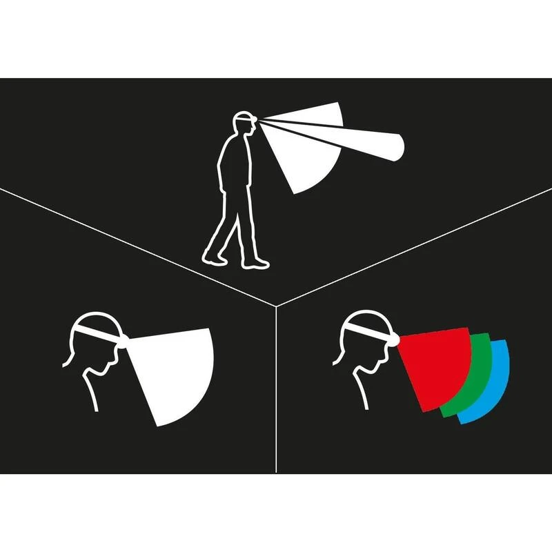 Lampe frontale étanche, robuste et puissante avec éclairage blanc, rouge, vert et bleu, idéale pour les observations en milieu naturel. 450 lumens
