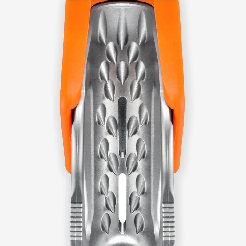 – La gâchette à picots en acier inoxydable et la fente d’évacuation des impuretés optimisent le fonctionnement sur la corde, qu’elle soit boueuse ou gelée.