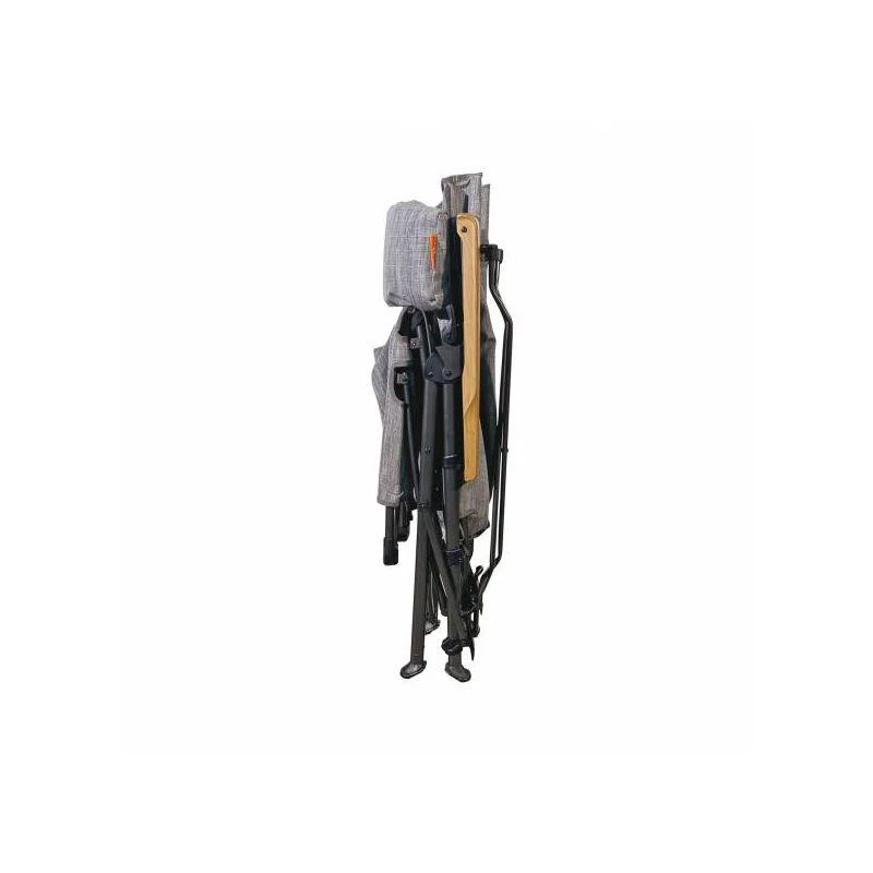 Fauteuil au design épuré avec son armature en acier noir, ses accoudoirs imitation bois et sa toile gris chiné en textilène et polyester, il offre de plus un contraste élégant et lumineuxFauteuil au design épuré avec son armature en acier noir, ses accoudoirs imitation bois et sa toile gris chiné en textilène et polyester, il offre de plus un contraste élégant et lumineux